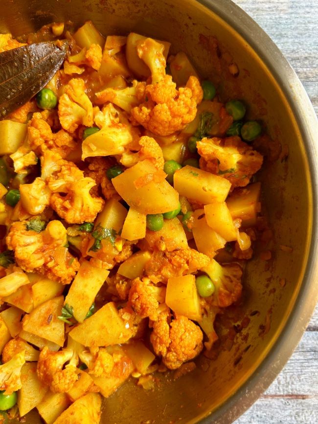 Eating hot off the pan Aloo gobi matar is the best, but I have to tell you that this dish tastes great even when cold. So they make a great lunch box recipe.